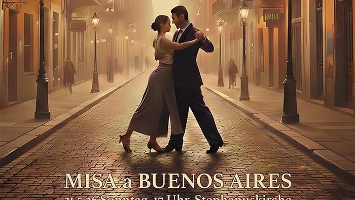 Die Kantorei wird mit der Misatango einen der ganz großen Chor-Hits des 20./21. Jahrhunderts aufführen. In diesem Werk verbindet der Komponist Martin Palmeri den Klang des Tango Nuevo in der Besetzung mit Bandoneon, Streichern und Klavier mit klassischen Kompositionstechniken wie einer Fuge. Merit Nath-Göbl, eine erfolgreiche, junge Mezzosopranistin singt, Christian Gerber, der die Misatango bereits mit dem Komponisten selbst aufgeführt hat, spielt Bandoneon und die in vielen Musikstilen erfahrenen Spieler*innen des Grand Art Ensembles bilden das Streichensemble. Vor der Misatango werden einige Tangos von Astor Piazzolla, dem Entwickler des Tango Nuevo, erklingen.